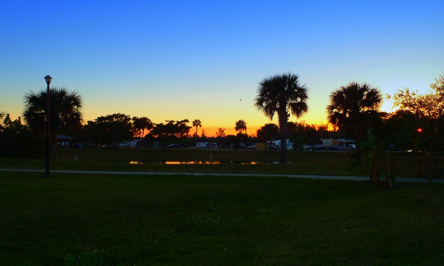Below is a picture of sunset at Long Point Park in Brevard County Florida. I spent 22 wonderful days and nights in this lovely campground. It's a tad remote, the grocery store is 12 miles away. Regular shopping can be found about 20 miles away.
